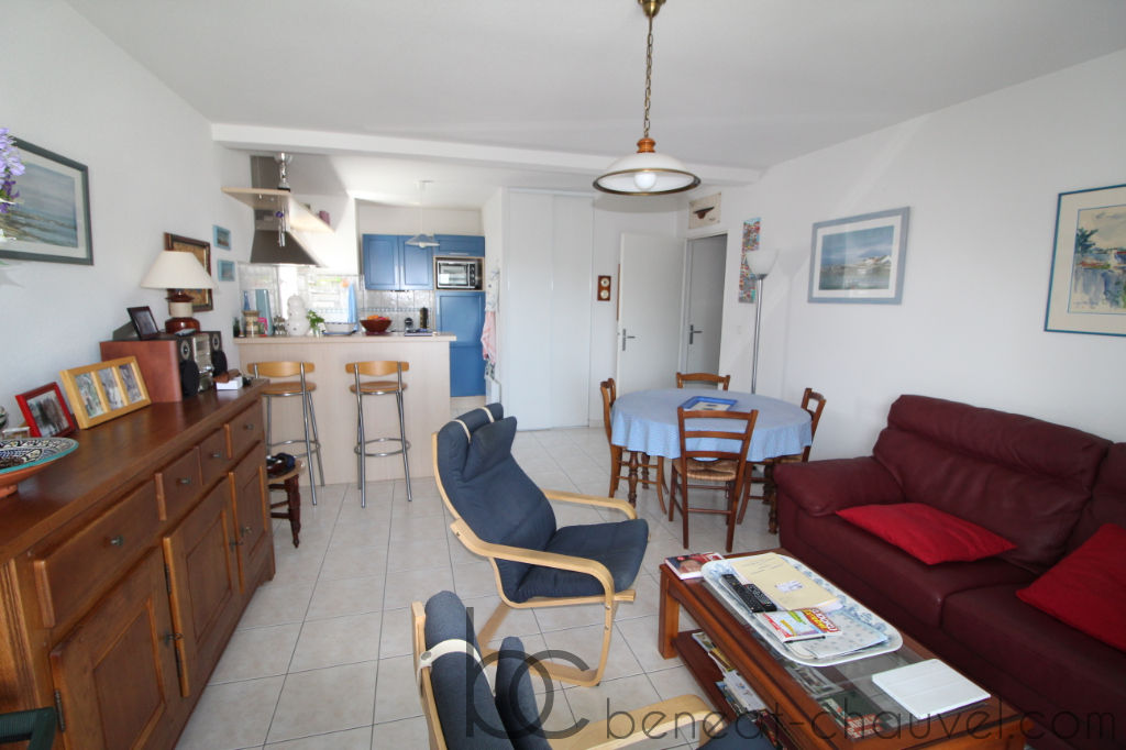 EXCLUSIVITE BENEAT CHAUVEL, proche port et commerces, bel appartement lumineux de type 3 situé au 1er étage comprenant entrée, séjour salon donnant sur une terrasse exposée plein sud, cuisine aménagée et équipée, deux grandes chambres, W.C indépendant et salle d’eau.