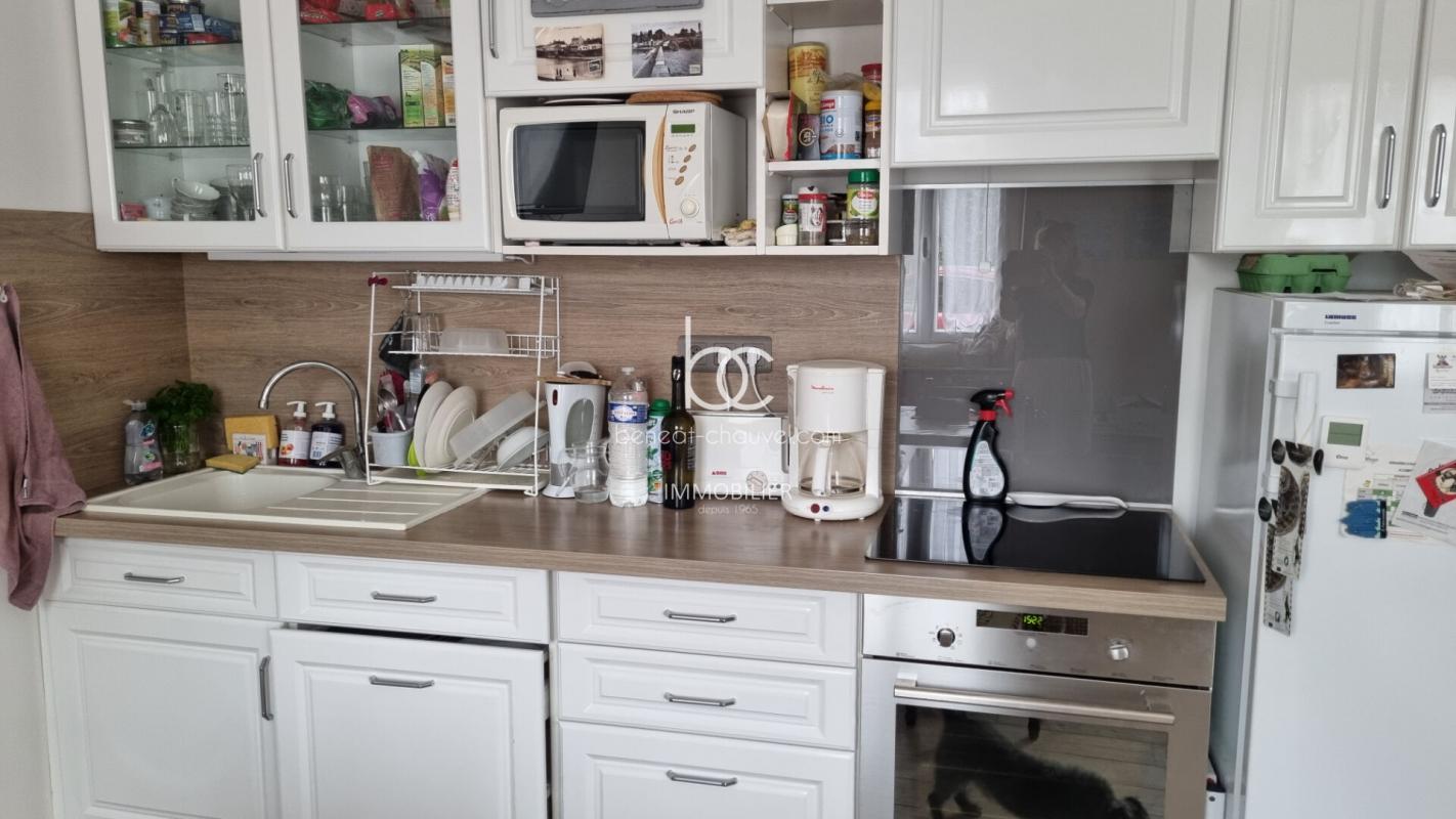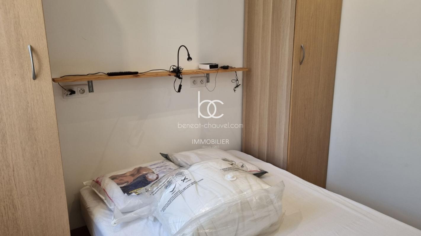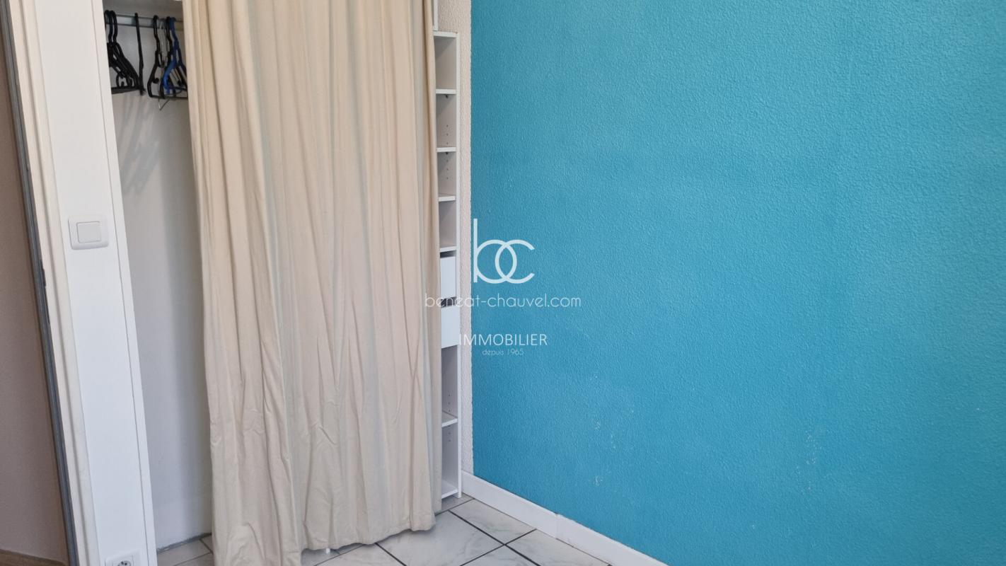 Hall (placard) – Séjour/Cuisine américaine équipée et aménagée (Four ; plaque de cuisson induction ; hotte ;réfrigérateur) – Deux chambres (penderie) –