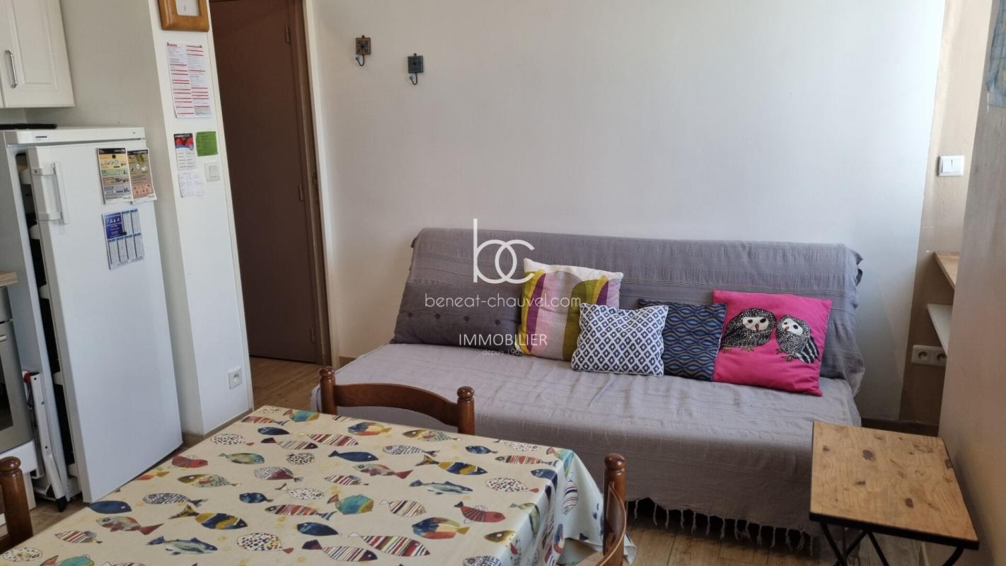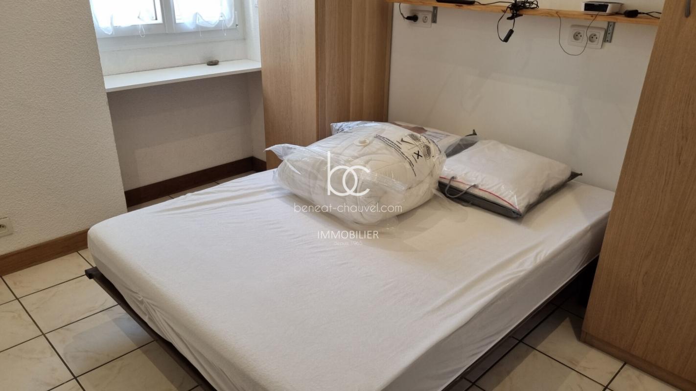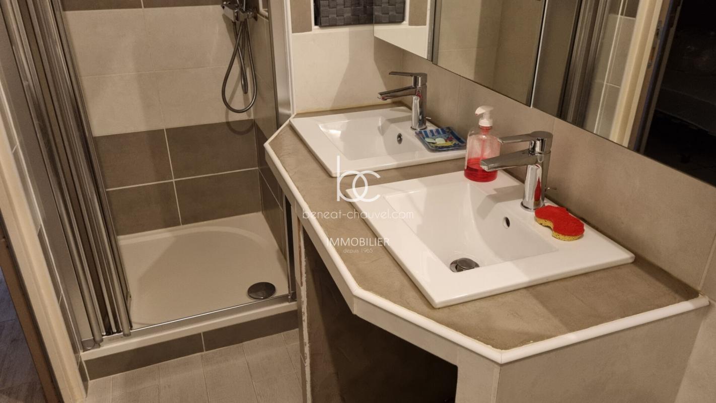 Hall (placard) – Séjour/Cuisine américaine équipée et aménagée (Four ; plaque de cuisson induction ; hotte ;réfrigérateur) – Deux chambres (penderie) –