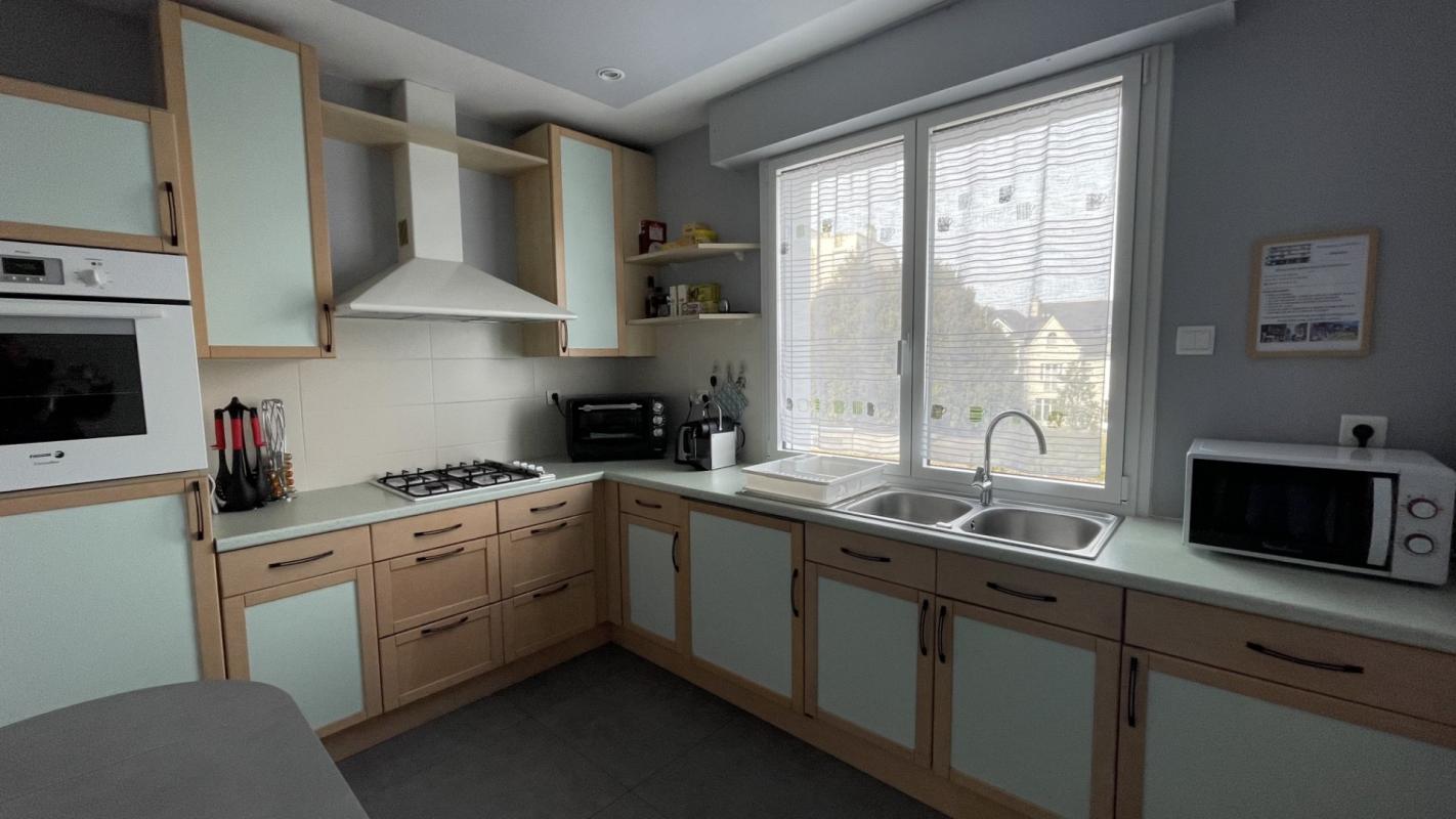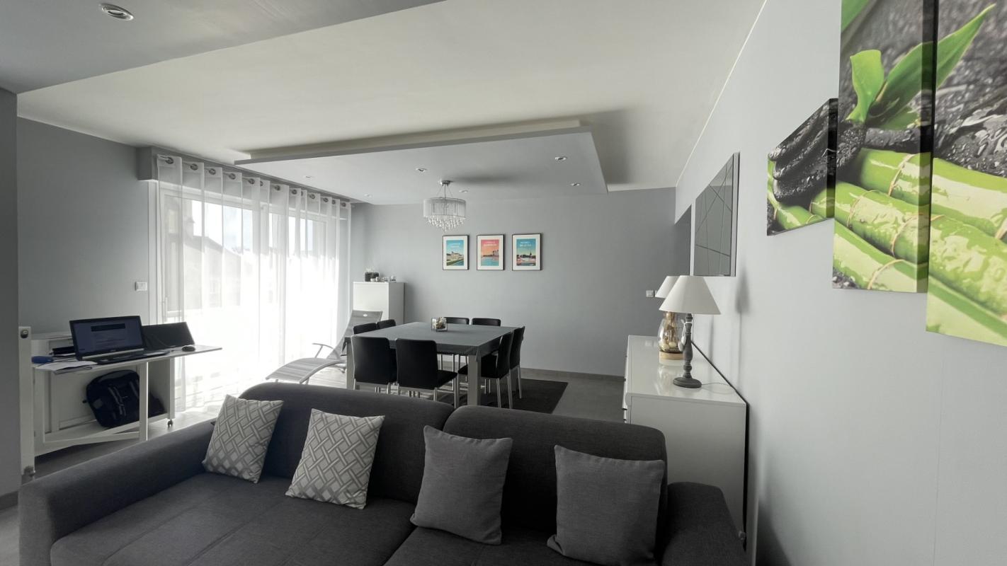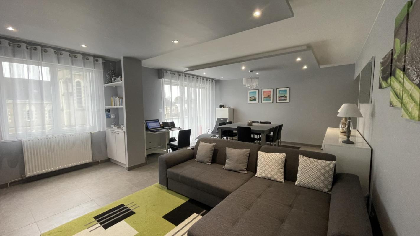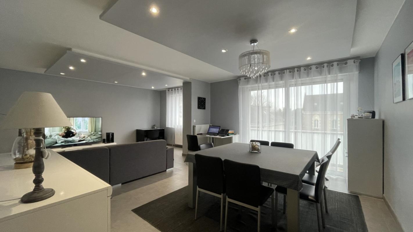 Vannes centre, "La Libération", dans un immeuble de très bon standing avec ascenseur, Magnifique T4/ T3 entièrement rénové comprenant : Hall, très beau séjour/salon donnant sur un balcon exposé Sud, 2 chambres avec placards, une salle d’eau, un wc. Un parking privatif à l’arrière de la résidence et une cave privative.