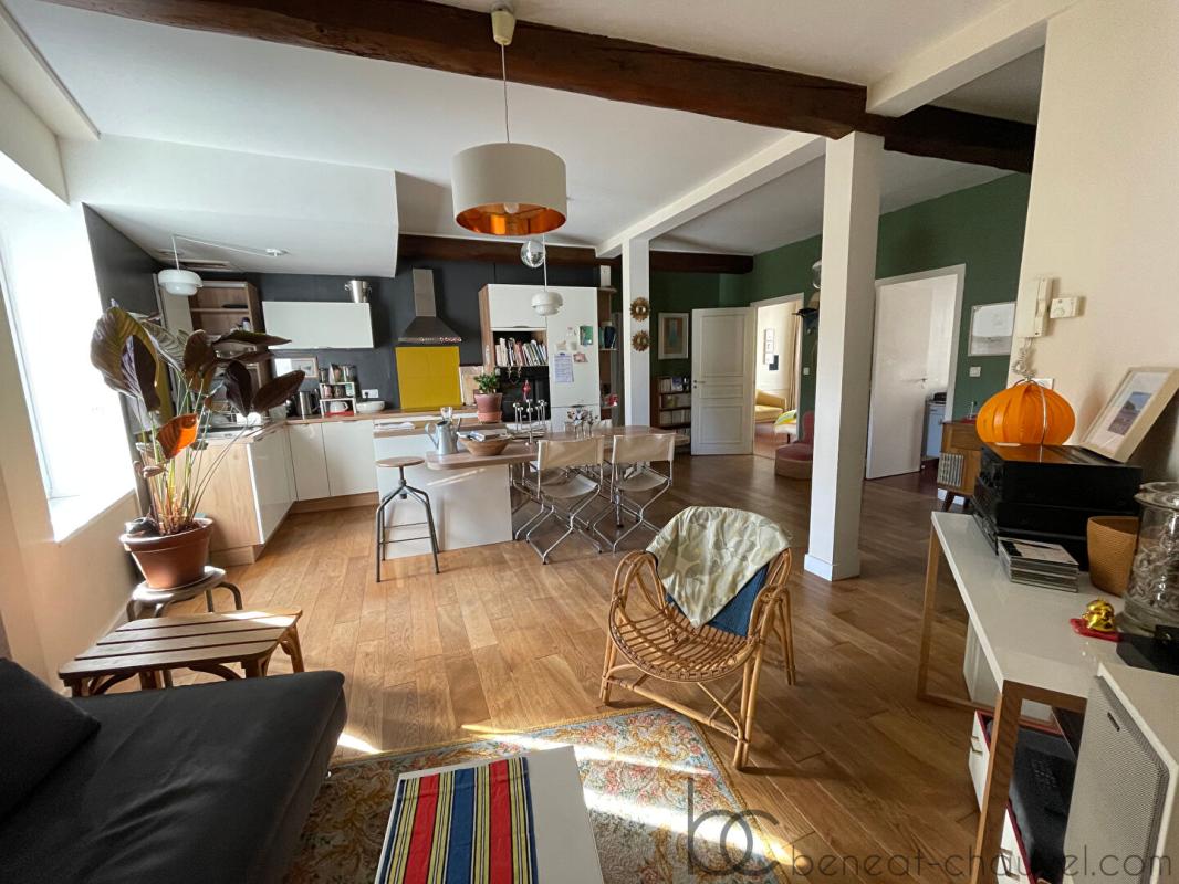 Vannes centre ville, dans un immeuble de caractère, beau 4 pièces de 73.39 m² comprenant : Hall, séjour-salon, cuisine équipée, 2 grandes chambres, salle d’eau, wc, rangement.