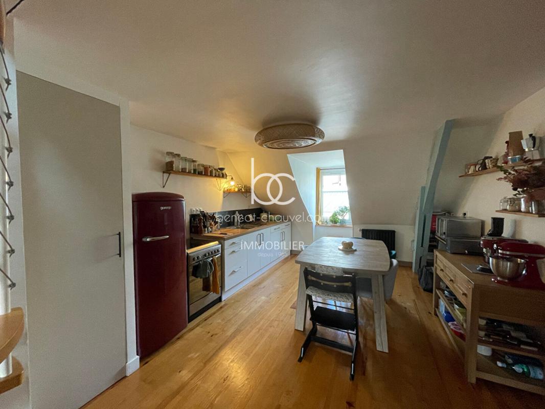 Vannes centre ville, dans un immeuble de caractère, belle rénovation pour ce magnifique 4 pièces de 105 m² au sol (75.71 m² carrez). Situé au 4ème et dernier étage, il est composé d’un hall, salon cheminée, cuisine équipée avec salle à manger, 2 chambres, salle d’eau, wc. Mezzanine avec coin bureau et une possibilité de 3ème chambre. Vue dégagée sur les remparts. Une cave