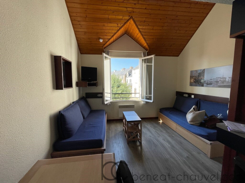 Le Cabinet BENEAT-CHAUVEL vous propose un Duplex en bon état situé au 1er étage , exposition ouest, avec une belle vue dégagée sur l’esplanade et une perçée mer. Il comprend : entrée, pièce de vie avec coin kitchenette aménagé et équipé, coin nuit, salle d’eau, W.C. A l’étage : une chambre, un autre coin nuit, salle de bains-W.C. Grenier. Vendu entièrement meublé. Casier plage. Parking privatif en sous-sol . Résidence accès direct plage du Fogeo et Port Crouesty à 200 m.