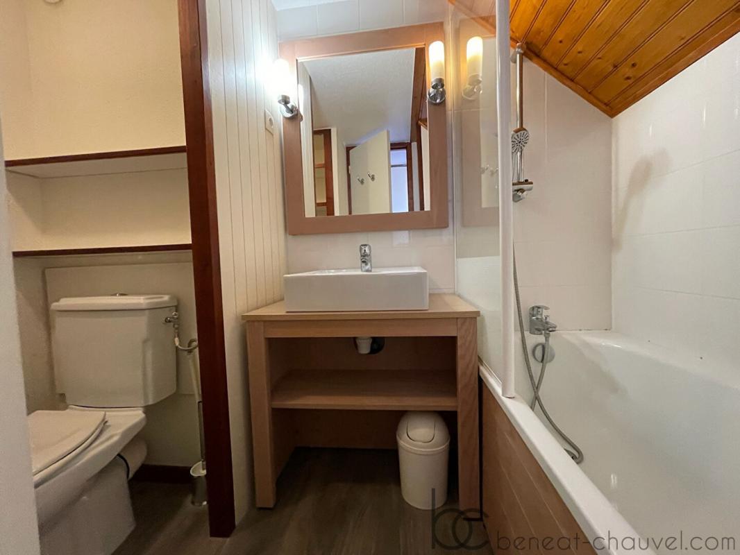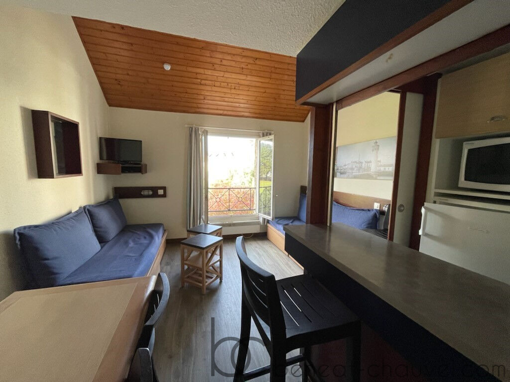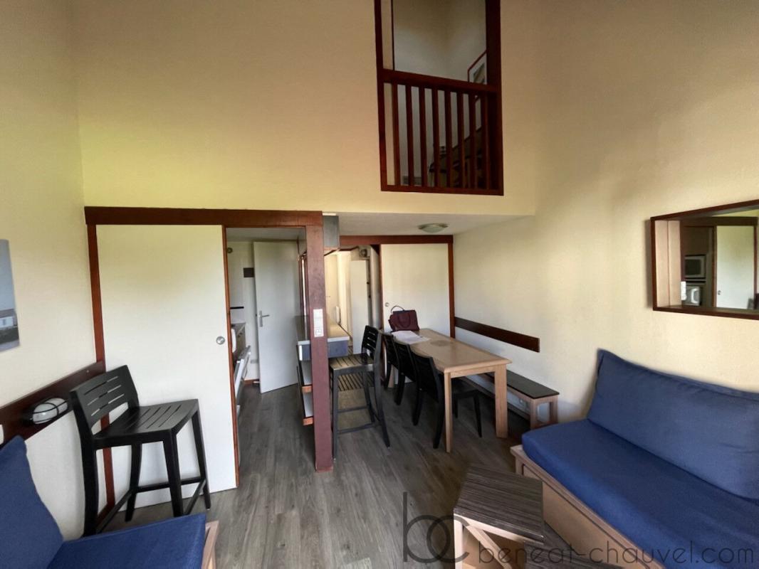 EXCLUSIVITE – Duplex rénové situé au 1er étage, exposition ouest. Il comprend : entrée, pièce de vie avec coin kitchenette aménagé et équipé, coin nuit, salle d’eau, W.C. A l’étage : une chambre, un autre coin nuit, salle de bains-W.C. Grenier. Casier plage. Parking privatif en sous-sol . Résidence en accès direct à la plage du Fogeo et à 200 m de Port Crouesty.