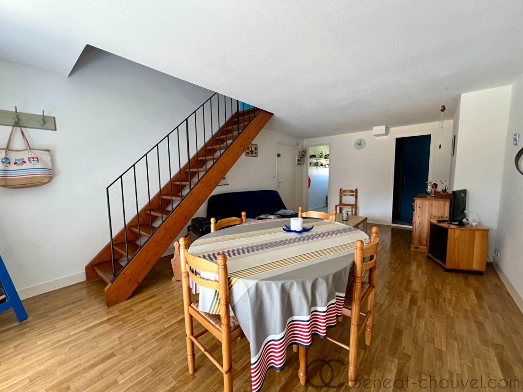 EXCLUSIVITE BENEAT-CHAUVEL, ARZON Kerjouanno, Venez découvrir ce beau duplex de 57m2 environ au 1er étage de la résidence composé d’un beau séjour donnant sur une loggia, coin cuisine, buanderie, wc, et à l’étage trois chambres, salle d’eau, à proximité de la plage de Kervers et de la plage du Fogeo, avec place de parking en sous-sol et une cave.