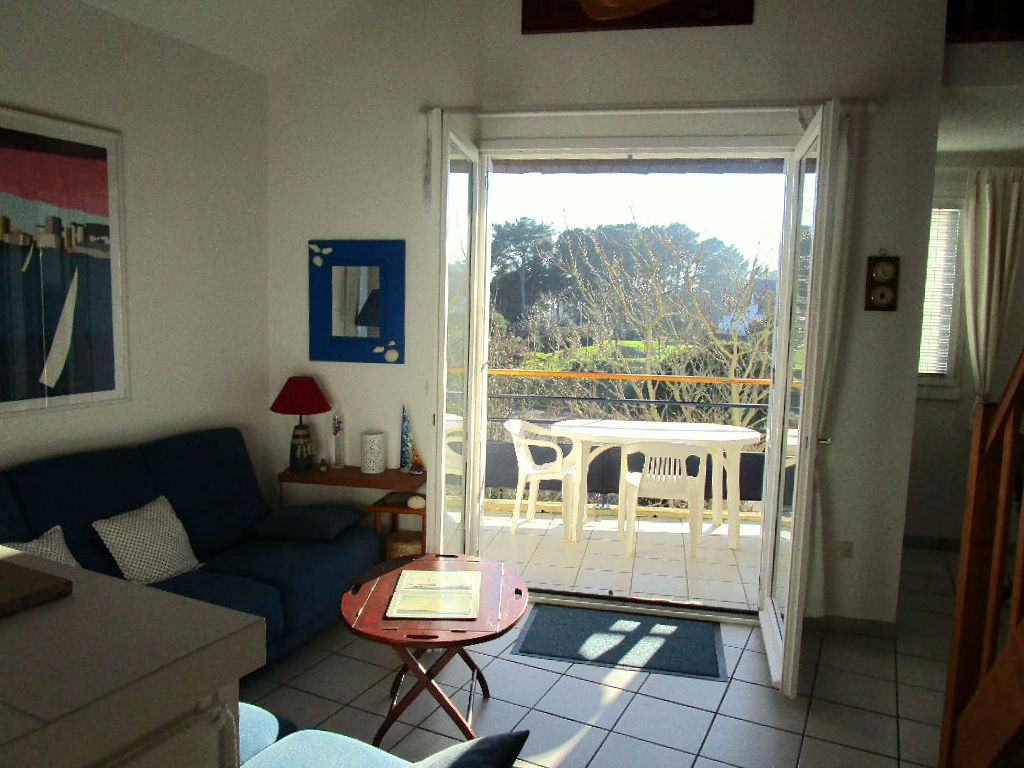 Port du Crouesty, vue port pour cet appartement en excellent état et agencé avec beaucoup de goût. Il comprend : entrée, W.C, pièce de vie avec cuisine aménagée, salon, loggia plein sud, chambre, salle de de bains, A l »étage : mezzanine, chambre, Parking collectif. Possibilité d’acquérir un parking et cellier en sous-sol en sus.