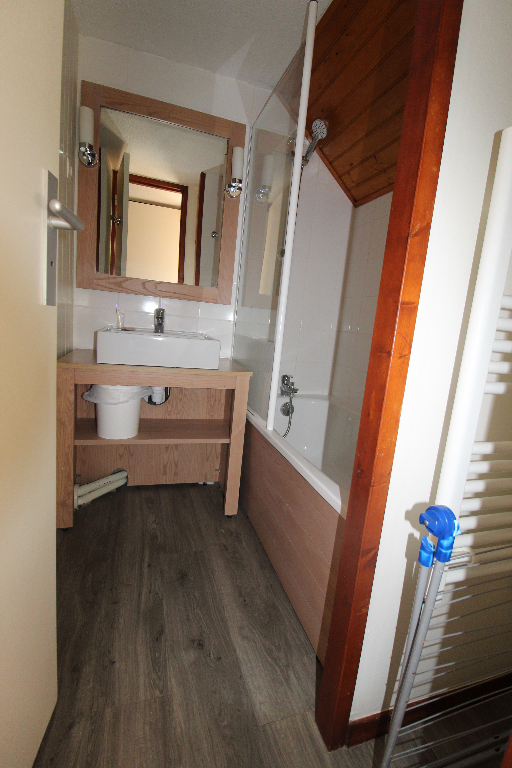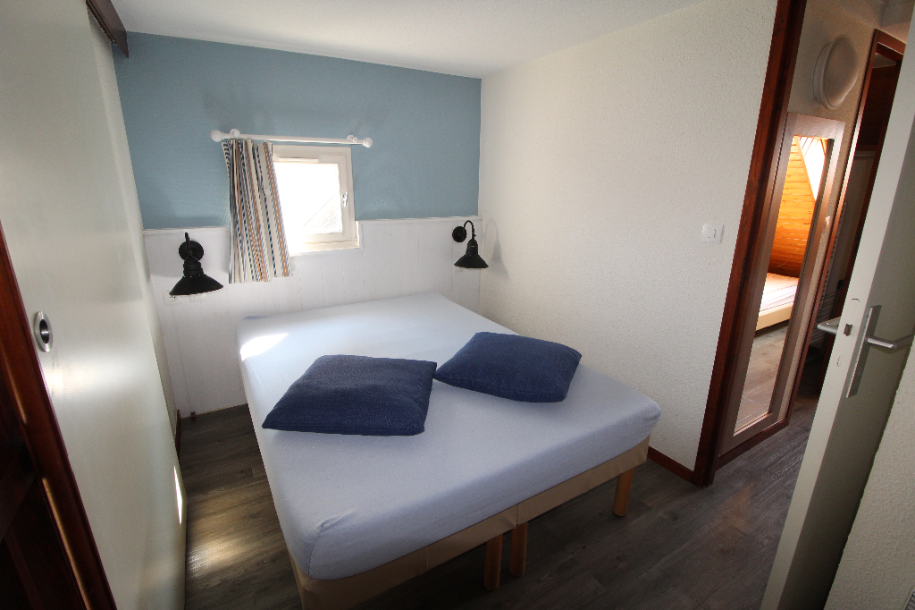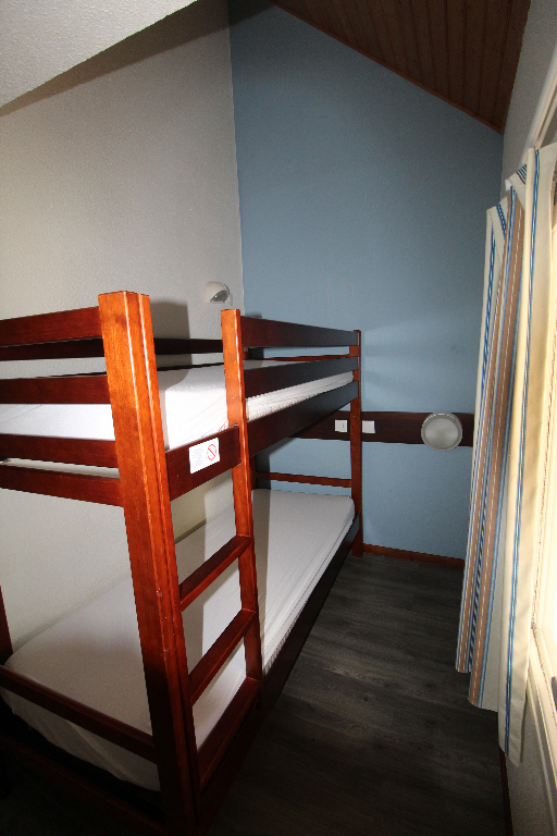 A l’étage : chambre en mezzanine, coin nuit, salle de bains-W.C. Parking privatif en sous-sol. Résidence en accès direct à la plage du Fogeo.