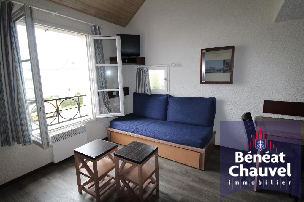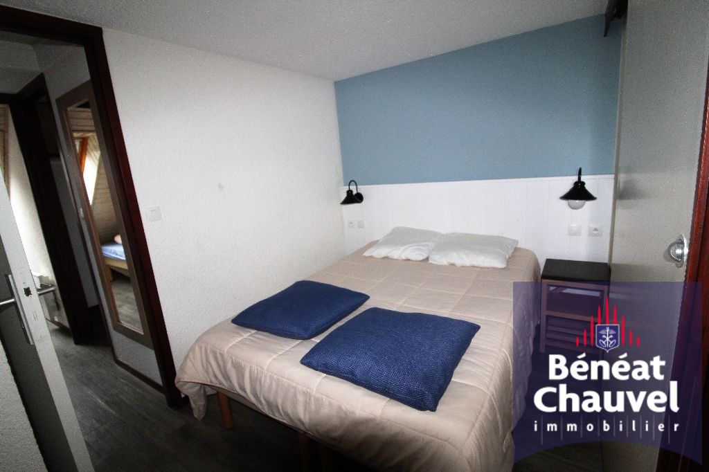 Accès direct à la plage du Fogeo, le Cabinet BENEAT CHAUVEL vous propose en exclusivité un DUPLEX totalement rénové comprenant : sas d’entrée avec rangement et casier plage, pièce de vie avec coin kitchenette, dégagement, W.C, salle d’eau, chambre cabine,