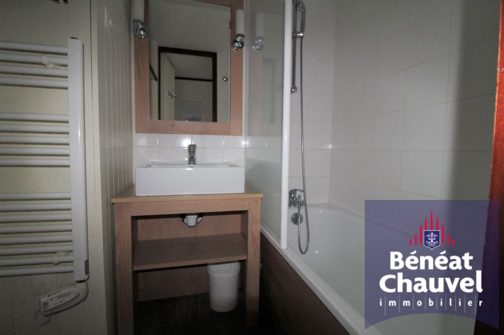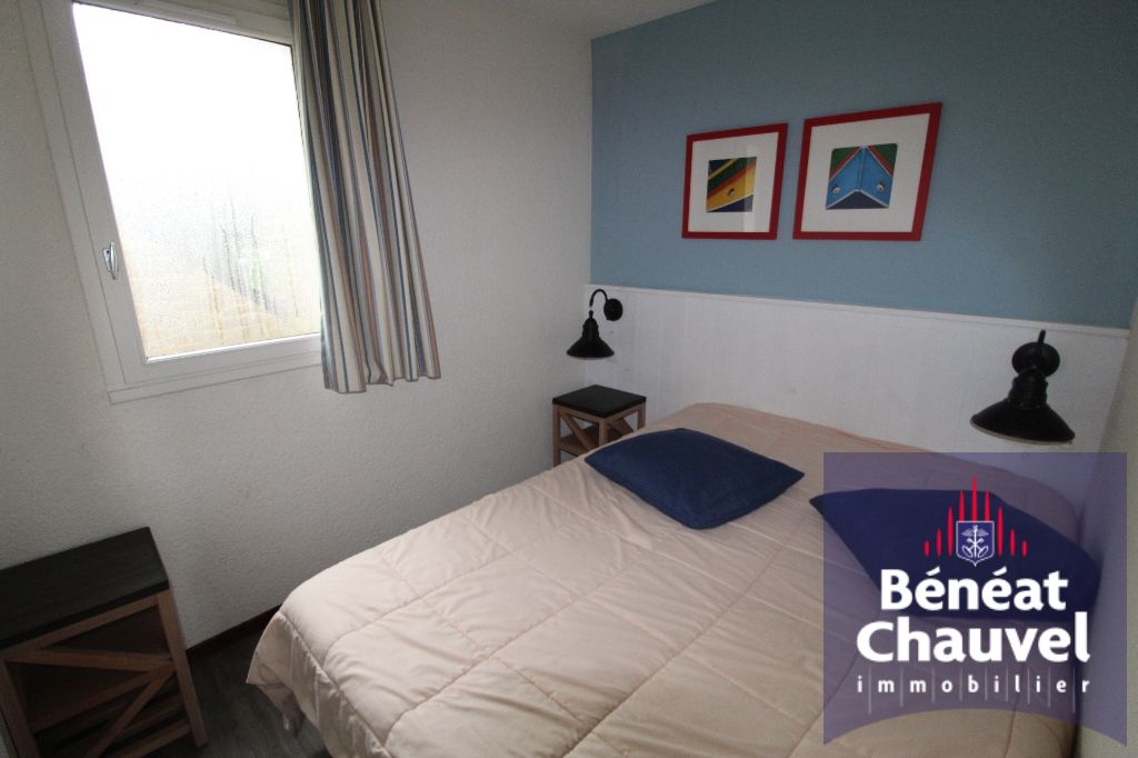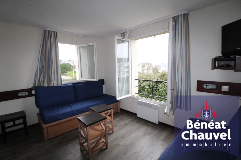 EXCLUSIVITE BENEAT CHAUVEL belle perçée sur port crouesty pour cet appartement rénové comprenant, entrée, pièce de vie avec petit coin kitchenette, chambre , salle de bains W.C. Casier plage.