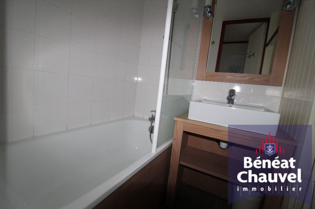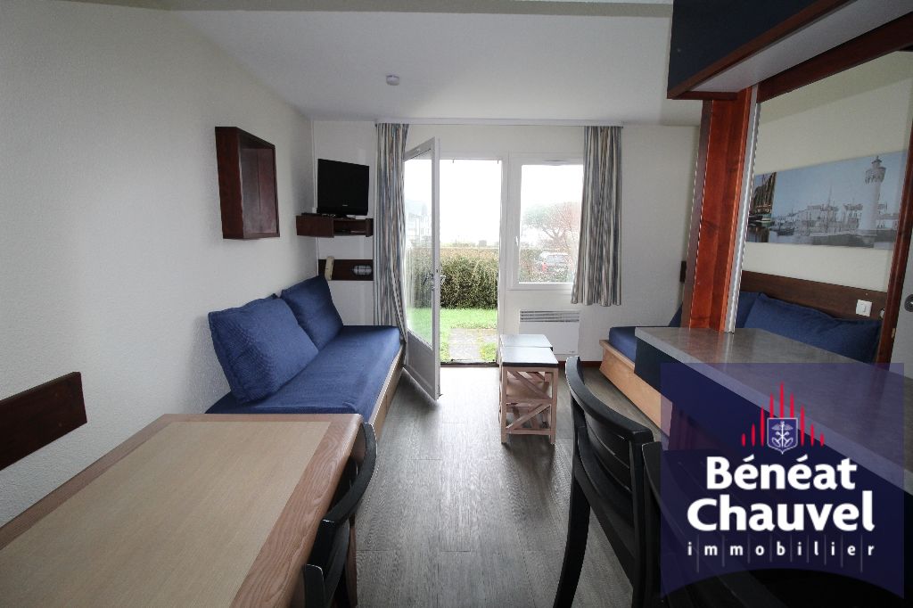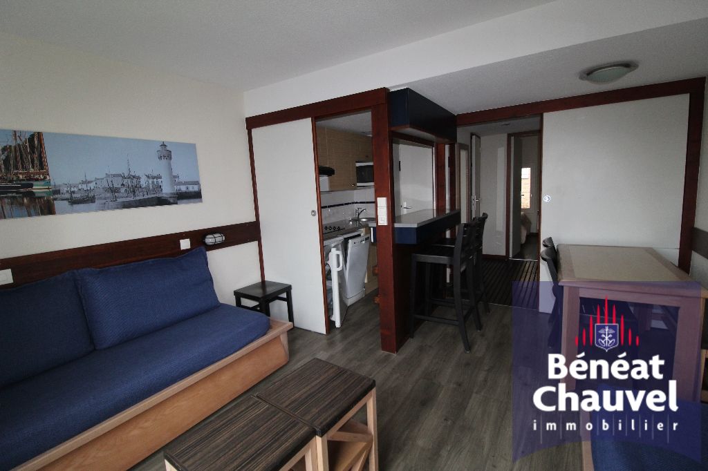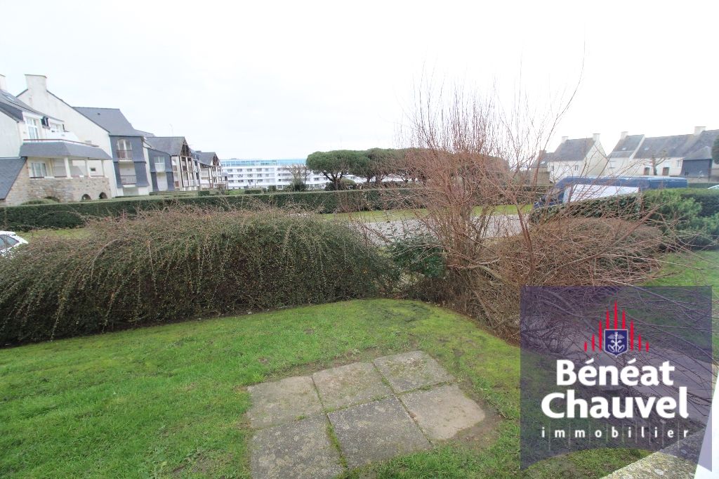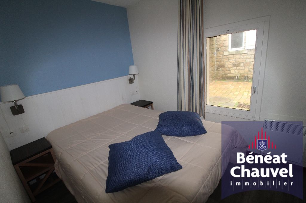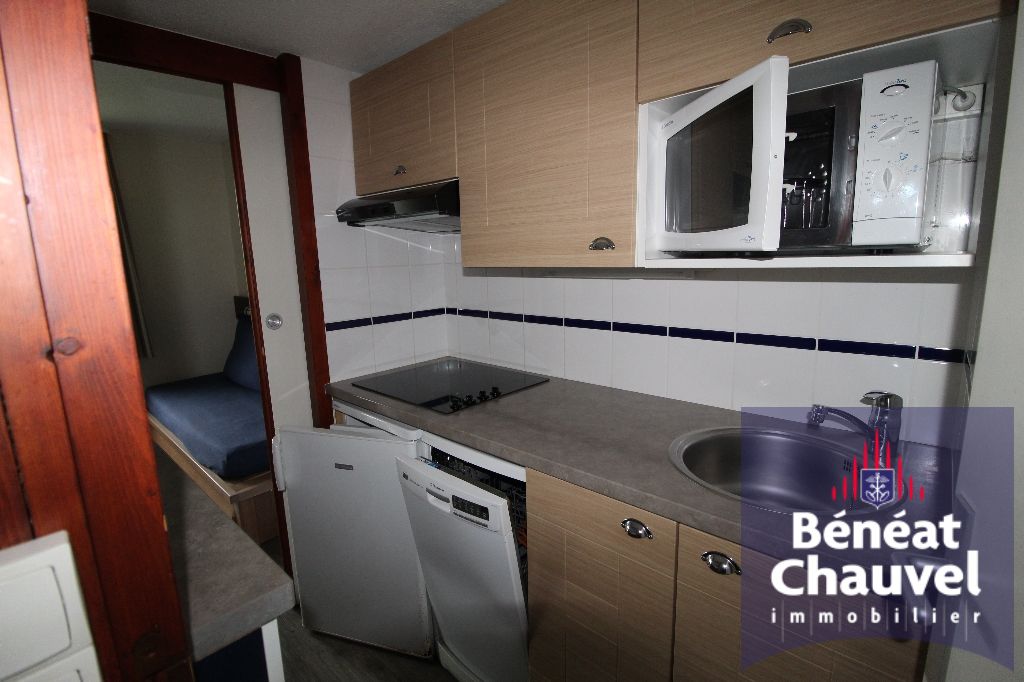 EXCLUSIVITE BENEAT CHAUVEL vue dégagée sur le Miramar pour cet appartement rénové comprenant, entrée, pièce de vie avec petit coin kitchenette, chambre , salle de bains W.C. Casier plage. Jouissance privative d’un jardinet. Parking privatif en sous sol. Résidence en accès direct à la plage du Fogeo.
