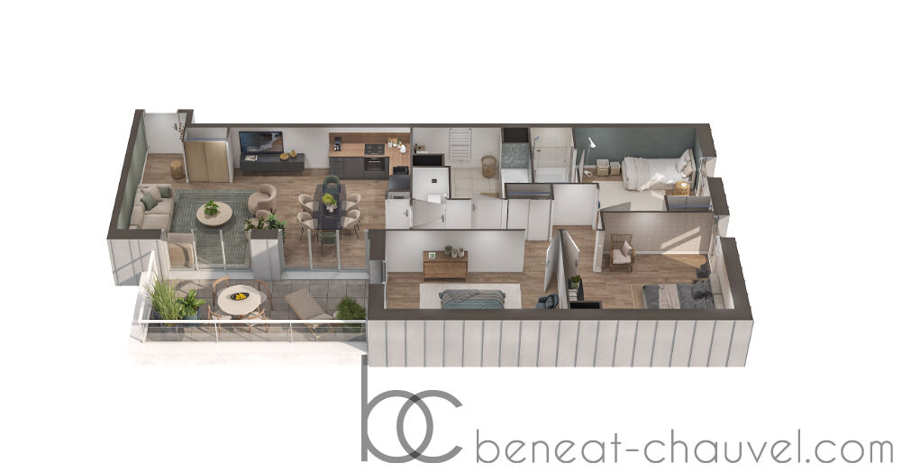 La résidence propose 48 appartements, répartis sur 2 immeubles donnant sur un patio centrale partagé et ombragé, véritables espaces de détente pour les habitants. Tous les logements disposent d’un balcon, d’une terrasse ou d’un jardin privatif. Local vélos commun dans chaque bâtiment. Labellisée RE2020, la résidence répond aux nouvelles exigences énergétiques et environnementales. Un soin particulier est apporté à la végétalisation du projet pour encourager la biodiversité. Vendu en état futur d’achèvement. Livraison prévue au 2ème trimestre 2026. Frais de notaire réduit.