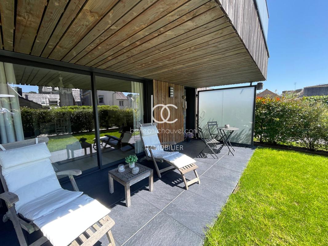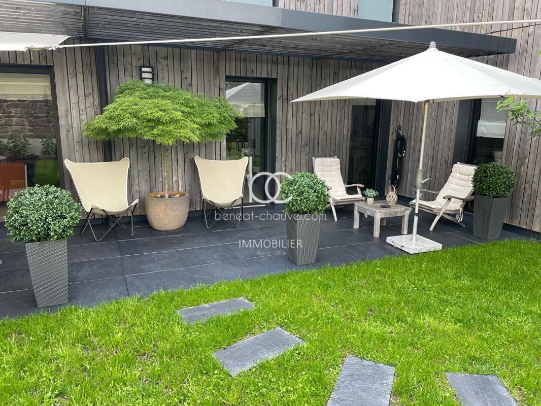EXCLUSIVITÉ – Vannes Saint Patern 200 mètres des jardins des Remparts, les commerces à proximité immédiate, Exceptionnel appartement de 151.75 m² comprenant : Hall, séjour-salon de 40 m² avec cheminée et donnant sur une terrasse et un magnifique jardin privatif paysagé donnant sur un mur de pierres, Une chambre de 20 m² avec dressing 12 m², salle de bains avec baignoire et douche, wc. Une chambre avec salle d’eau privative, wc, cuisine de 19 m² avec patio et cellier attenant. Deux Garages de 23 et 18 m² avec mezzanine.