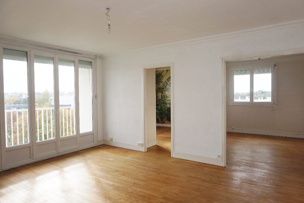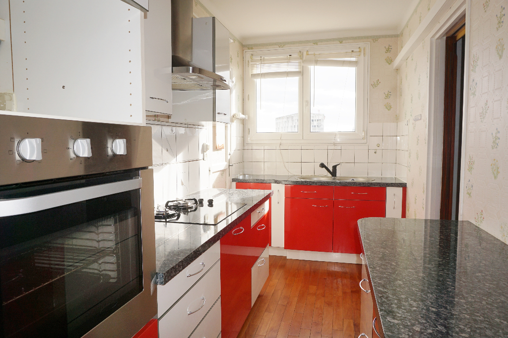 Hall, placards, séjour-salon sur balcon, cuisine équipée, 4 chambres, salle d’eau, wc suspendu. Cave