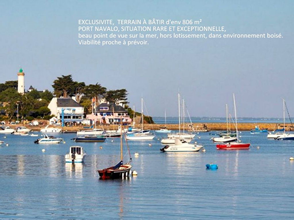 EXCLUSIVITÉ, Port-Navalo, situation rare et exceptionnelle, terrain à bâtir d’env 806 m² avec beau point de vue sur la mer, hors lotissement, dans environnement boisé. Viabilité proche à prévoir. A saisir rapidement.