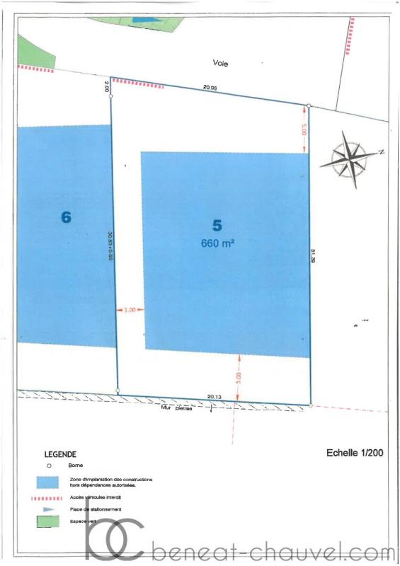 Terrain viabilisé de 660 m² emprise possible de 165 m²,