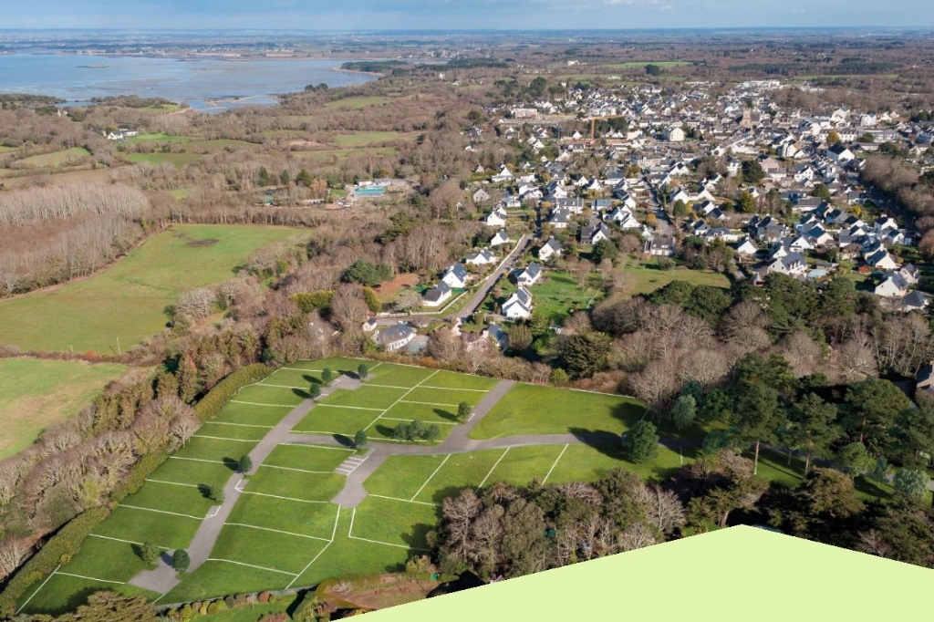 SARZEAU Ville. A quelques pas du centre et de ses commodités, dans un cadre d’exception situé sur les hauteurs offrant un joli panorama sur le golfe du morbihan et s’intégrant dans un site déjà boisé, un terrain à bâtir vendu viabilisé de 398 m² offrant d’importante possibilité de construction. Prêt à bâtir