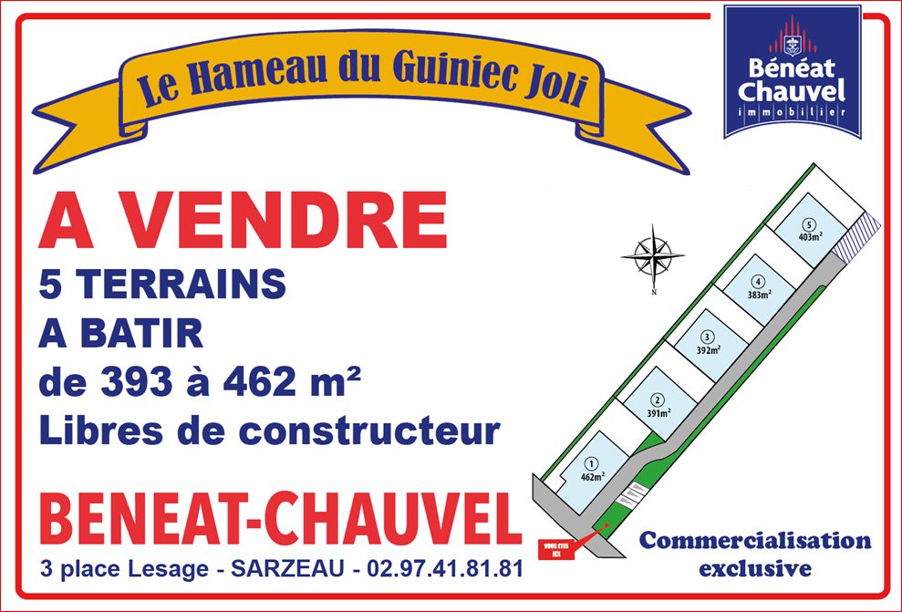 Golfe St Armel à proximité immédiate du village, en bords du golfe. 15min de vannes, beau terrain constructible de 462 m² environ entièrement viabilisé. livraison 1er trimestre 2020 .