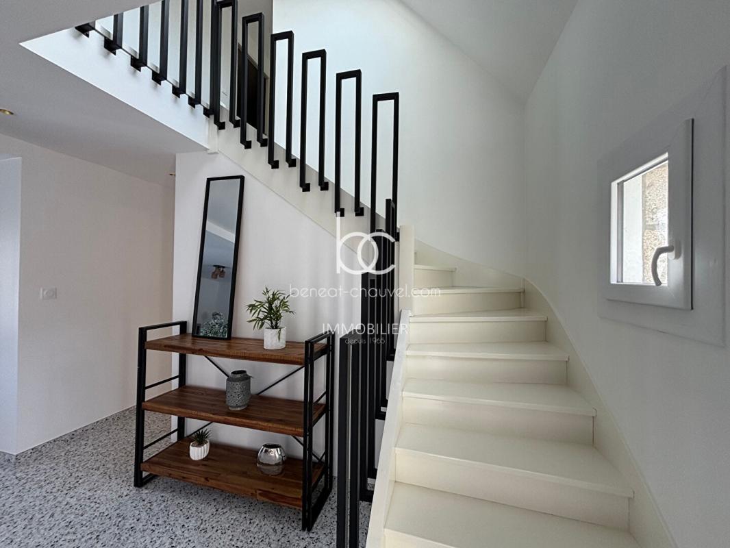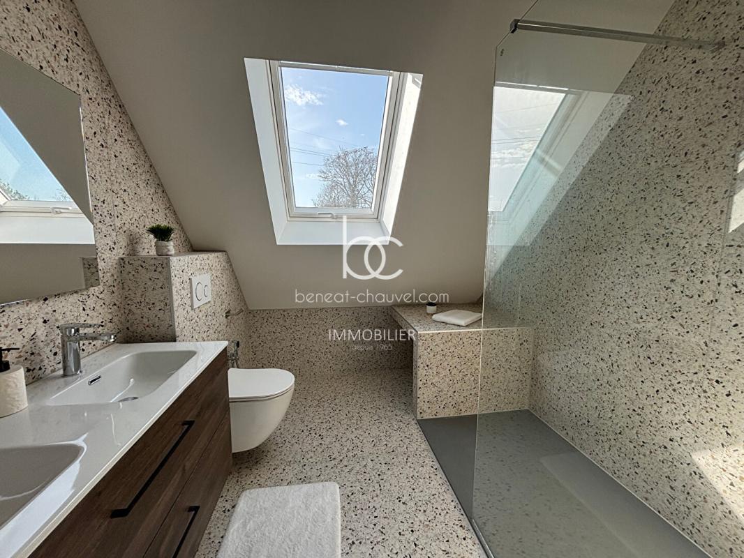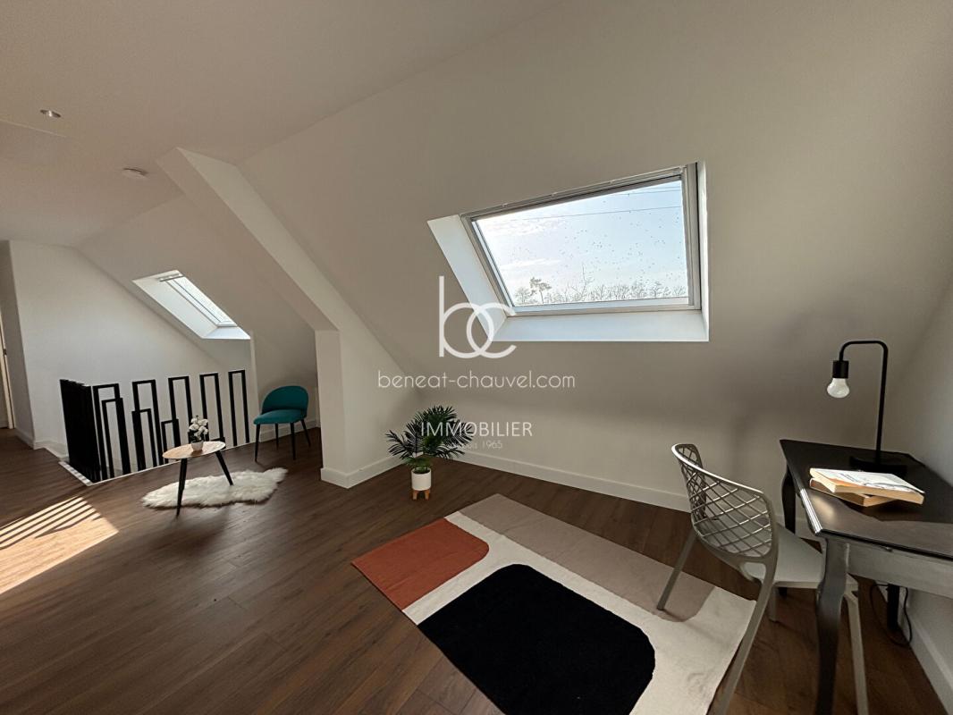 A l’étage, une élégante mezzanine surplombe l’espace de vie et distribue quatre belles chambres aux volumes généreux, offrant à chaque membre de la famille son espace d’intimité. L’une de ces chambres bénéficie d’une salle de bains privative, tandis qu’une deuxième salle d’eau avec WC et un toilette séparé viennent parfaire l’étage. Cette rénovation complète et réussie fait de cette maison un bien prêt à accueillir ses nouveaux propriétaires sans aucun travaux à prévoir.
