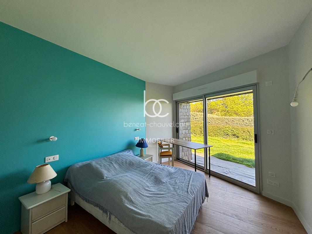 Côté nuit, la villa propose une distribution pensée pour le confort et l’intimité de chacun avec quatre chambres spacieuses. La suite parentale dispose de sa propre salle d’eau et d’un dressing privatif, alors qu’une deuxième chambre bénéficie également d’une salle d’eau attenante. Deux autres chambres se partagent une salle de bains complète, équipée d’une baignoire et d’une douche, le tout étant complété par deux toilettes indépendants. Chaque espace a été conçu pour maximiser les volumes et la fluidité de circulation.